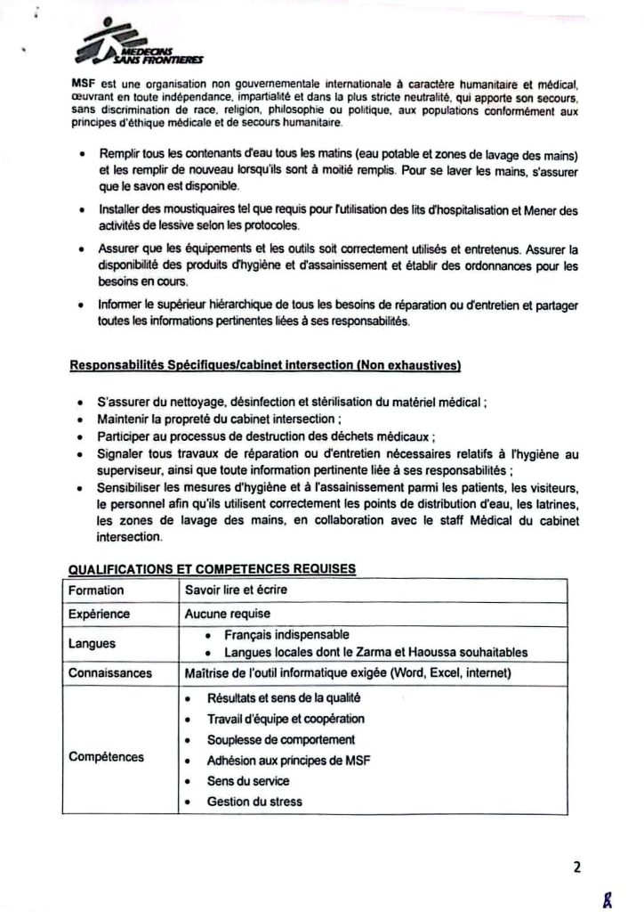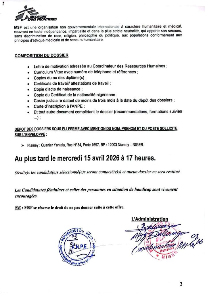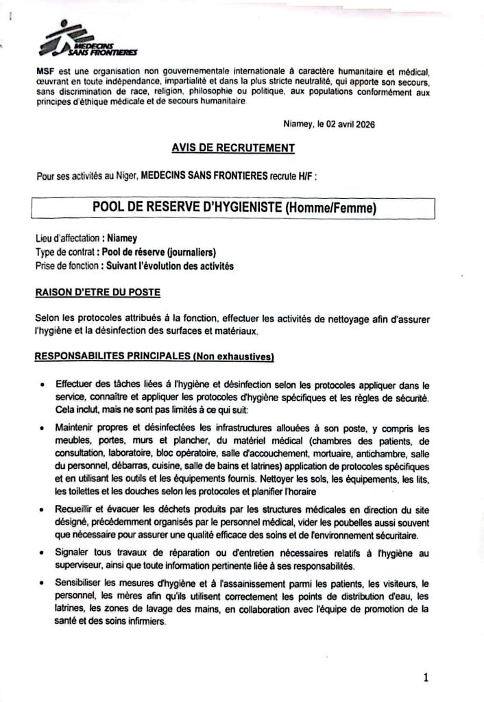 MEDECINS SANS FRONTIERES recrute H/F: