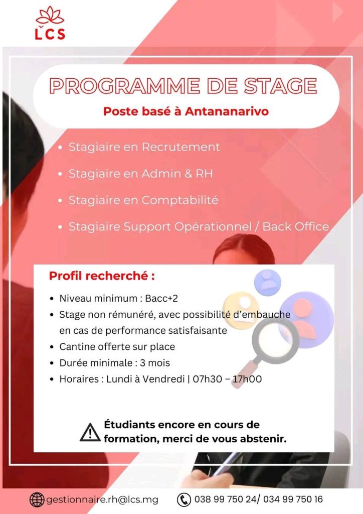 Ne cherche plus, LCS recrute ses prochains stagiaires à Antananarivo ! ![]()
