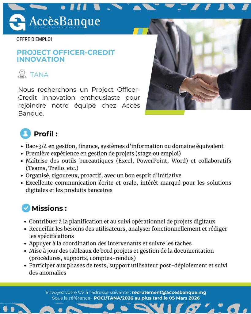 📩Envoyez vos candidature à : recrutement@accesbanque.mg
