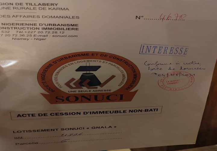 Nb: les actes sont deja conforme à la base de données de la Société Nigérienne d’urbanisme et de construction immobilière (SONUCI)