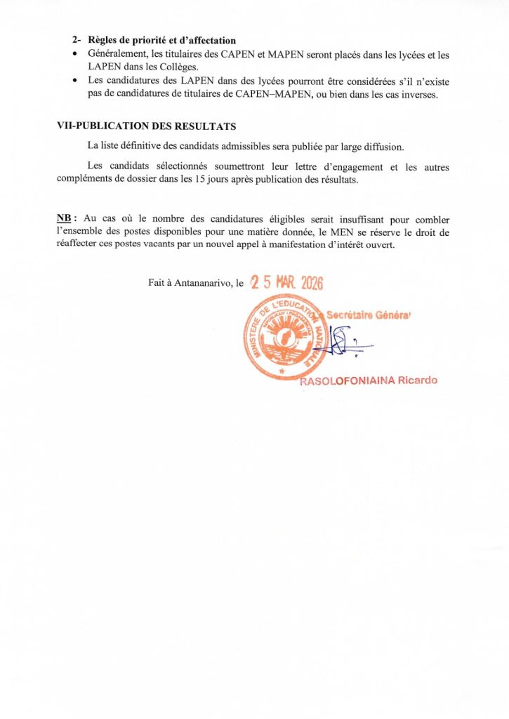 Date limite des dépôts de candidatures : Mercredi 8 Avril 2026
