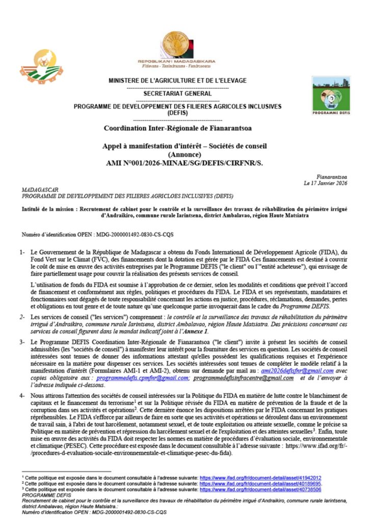 PROGRAMME DEFIS, CIR FIANARANTSOA :