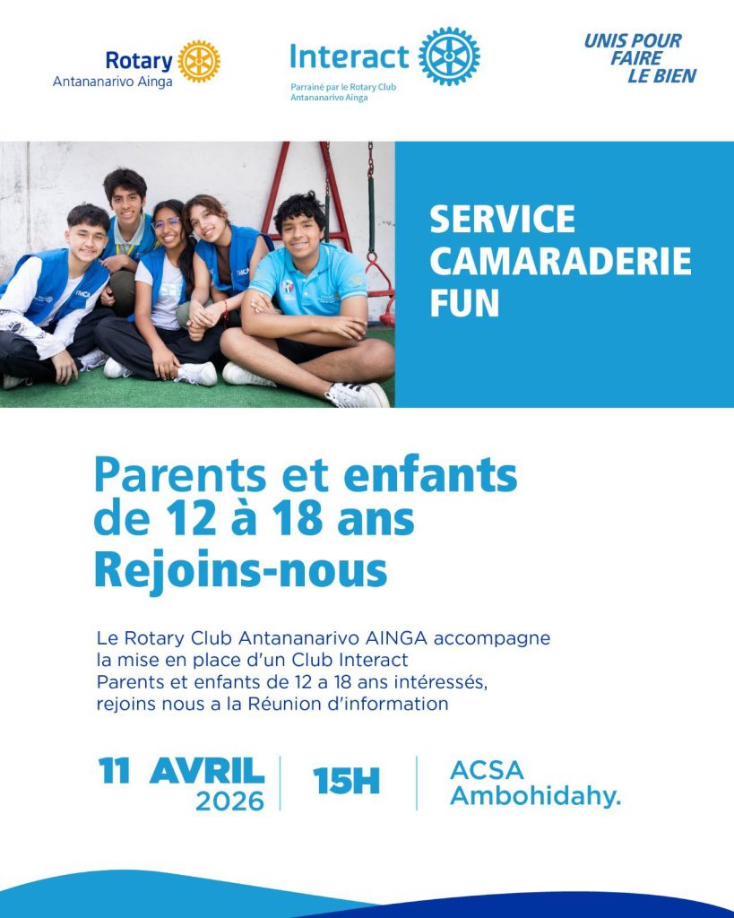 Le Rotary Club Antananarivo AINGA lance son Club Interact et t’invite, avec tes parents, à une réunion d’information !