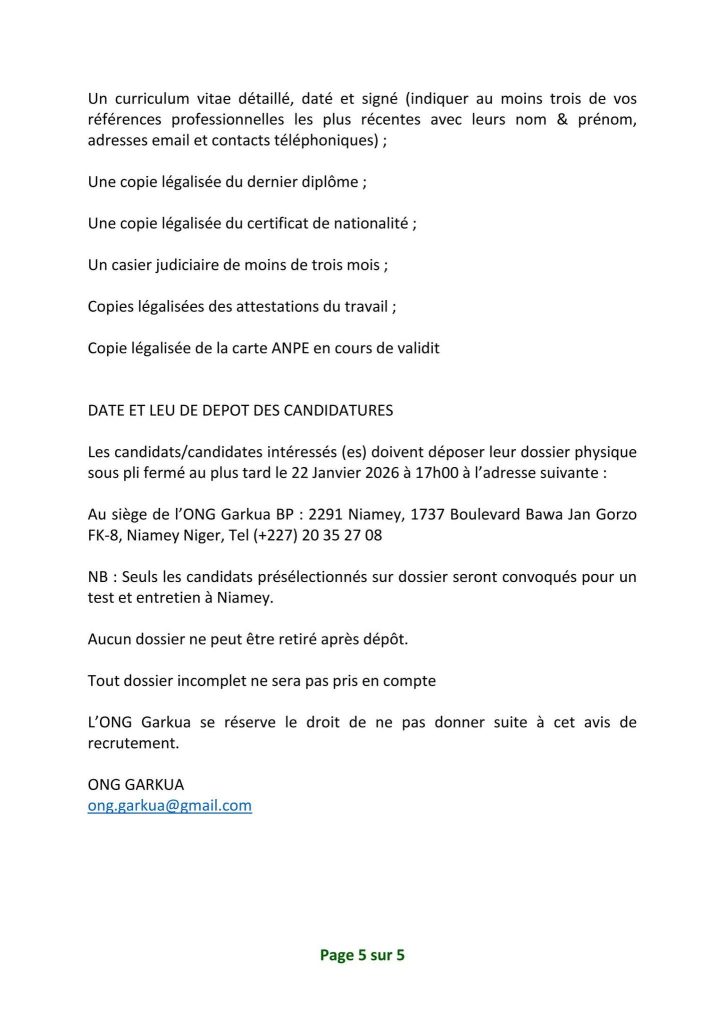 Date limite de dépôt des candidatures: 22 Janvier 2026 à 17h00