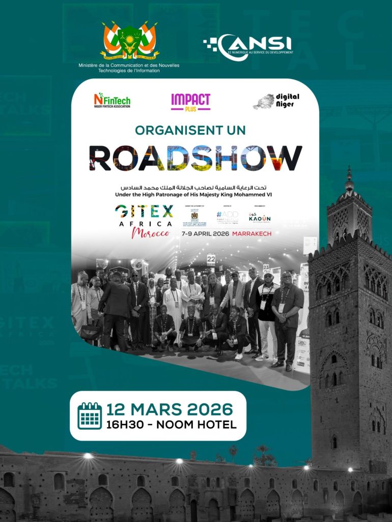Grâce au soutien de Agence Nationale pour la société de l’Information , le Niger sera présent à GITEX AFRICA 2026 à Marrakech avec un pavillon officiel réunissant 𝟏𝟎 𝐬𝐭𝐫𝐮𝐜𝐭𝐮𝐫𝐞𝐬 𝐧𝐢𝐠𝐞́𝐫𝐢𝐞𝐧𝐧𝐞𝐬 prêtes à représenter l’innovation nationale.