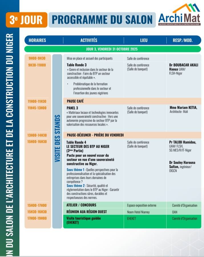 SALON DE L’ARCHITECTURE ET DE LA CONSTRUCTION DU NIGER – ARCHIMAT 2025 (1ÈRE ÉDITION)