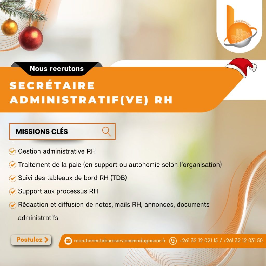 Expérience confirmée (2 à 3 ans min.) en secrétariat RH ou administration du personnel.