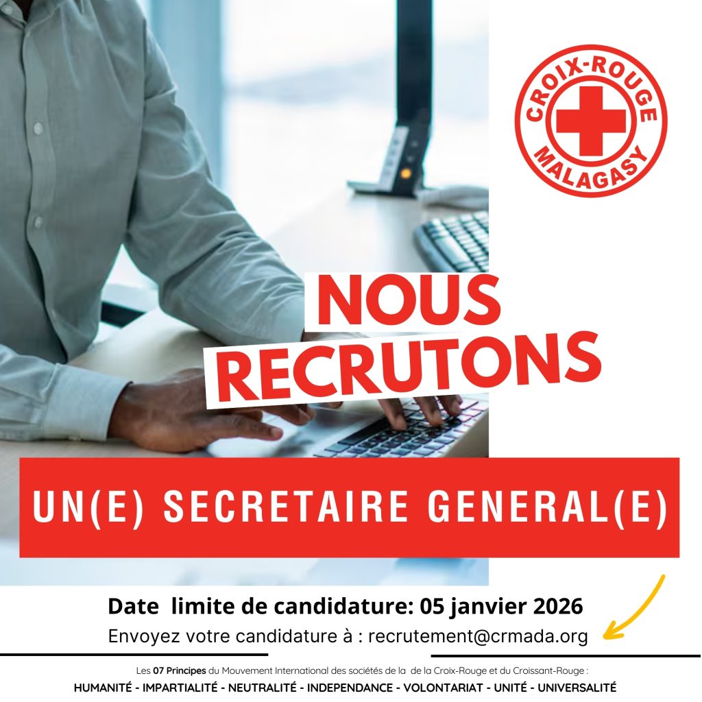 #CroixRougeMalagasy#AvisDeRecrutement#RecrutementCRM#SecretaryGeneral#gouvernance#leadership#Humanitaire#Antananarivo#EmploiMadagascar#humanity#engagement#transparence#volontariat