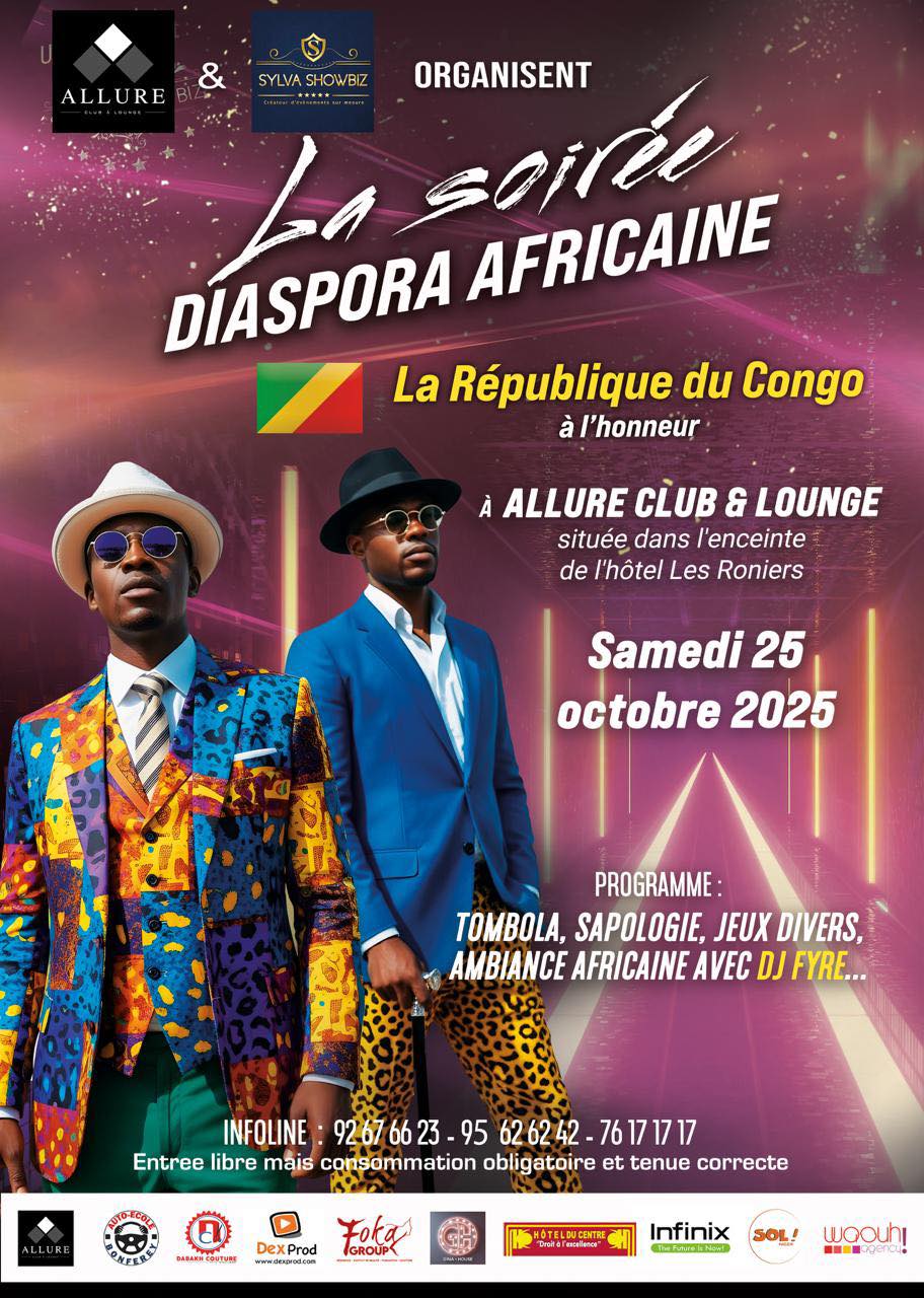 Tic tac tic tac, le samedi 25 octobre 2025 en attendant le festival des africains au Niger ne manquez pas la soirée diaspora africaine avec à l’honneur la république du Congo.