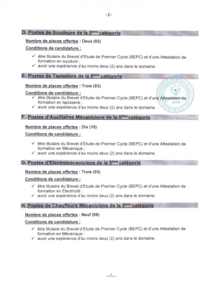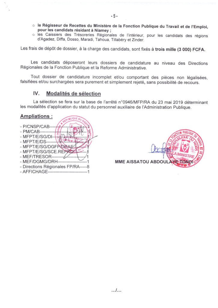 AVIS DE RECRUTEMENT N°000001/MFPT/E