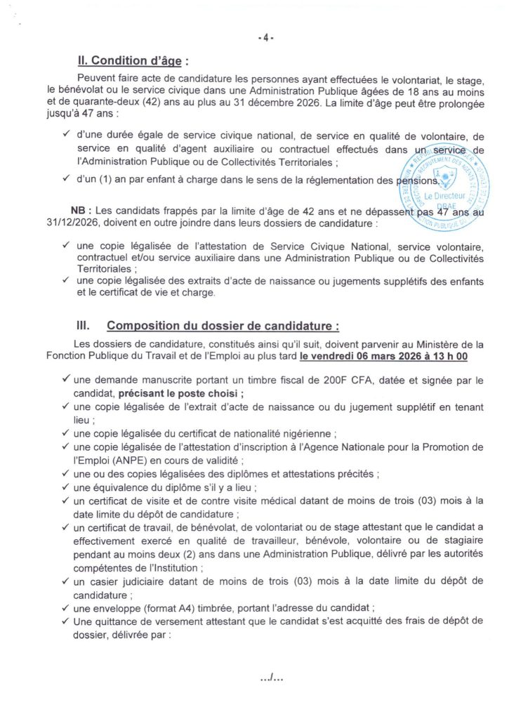 Date limite des dépôts de candidatures : Vendredi 6 Mars 2026 à13H00