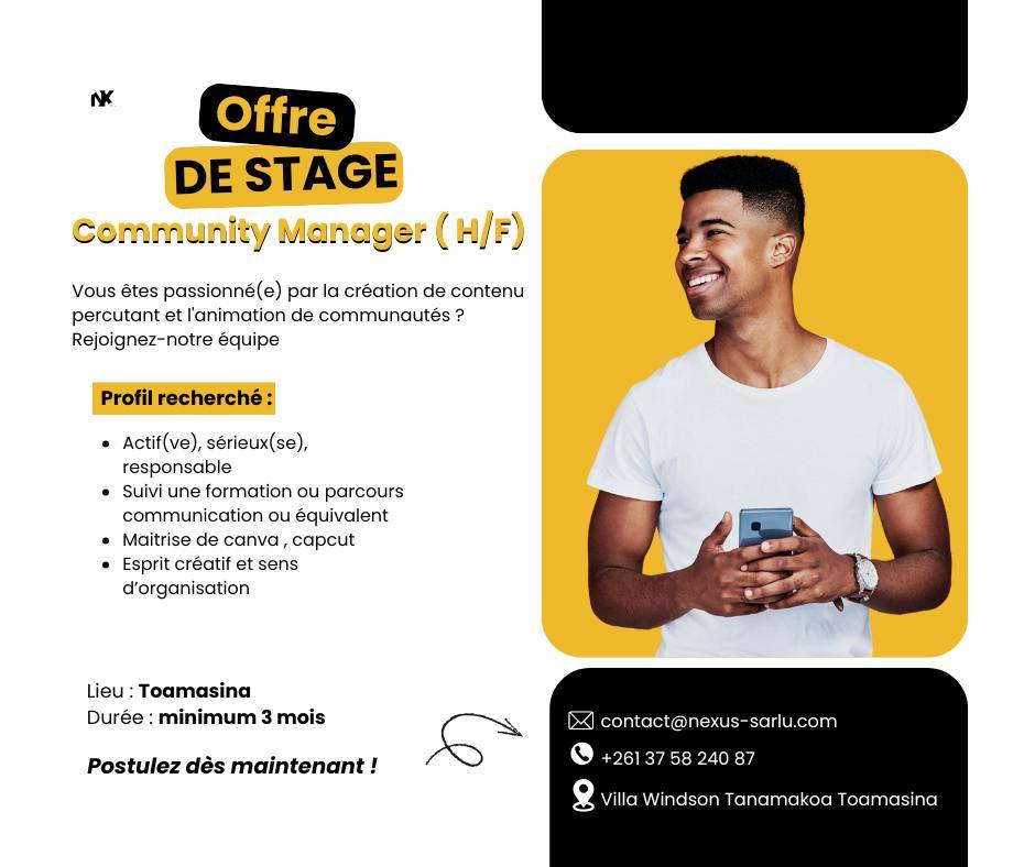 STAGE À TOAMASINA – COMMUNITY MANAGER (H/F)