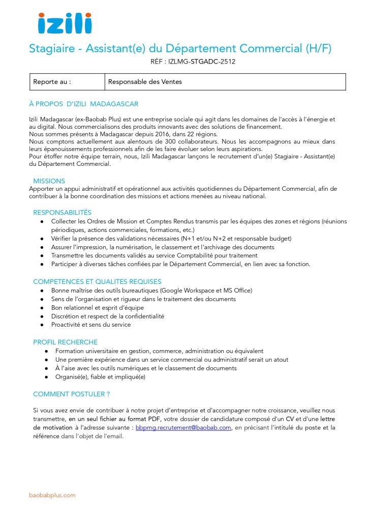 Stagiaire – Assistant(e) Direction Commercial (Antananarivo)
