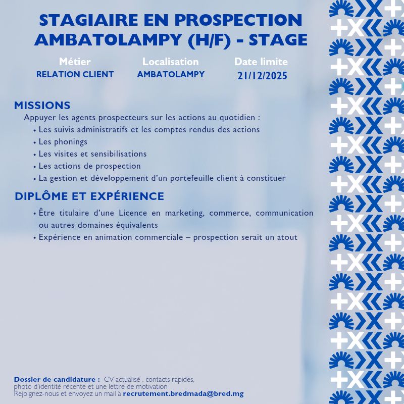 Rejoignez-nous en envoyant votre candidature à l’adresse recrutement.bredmada@bred.mg