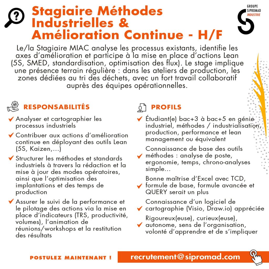 Pour postuler, envoyez-nous votre dossier de candidature (CV + LM) par email à l’adresse recrutement@sipromad.com