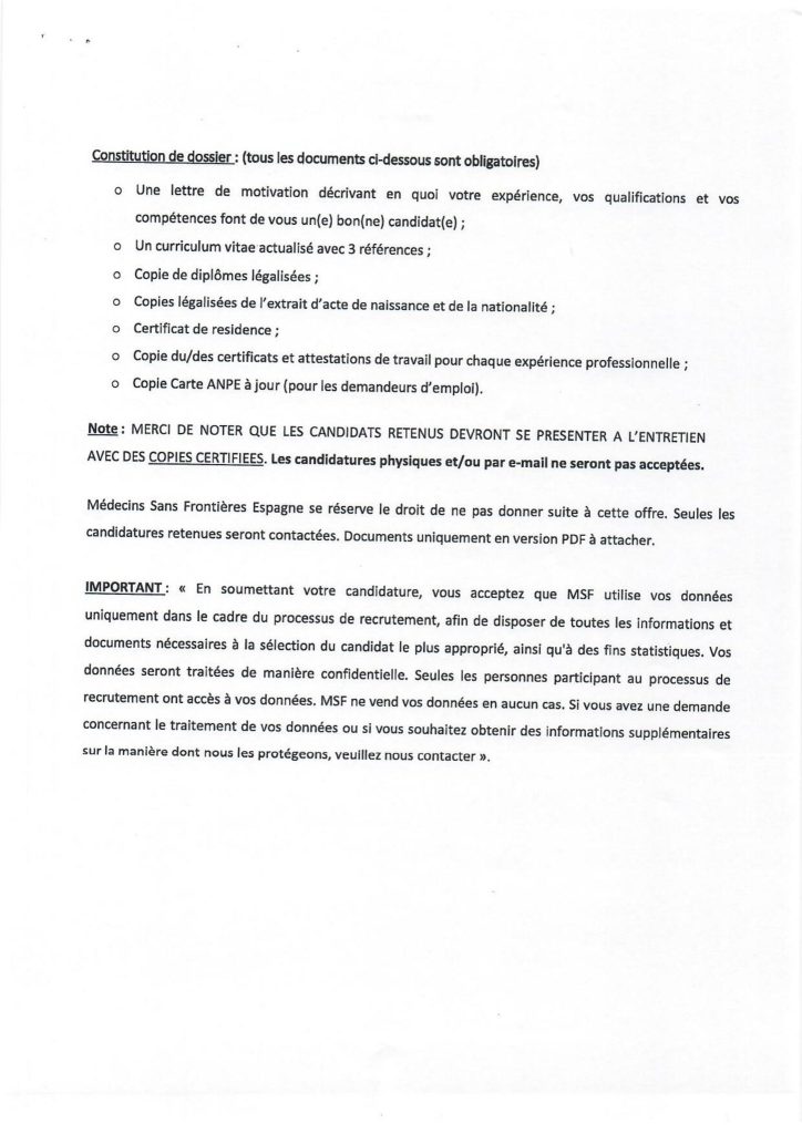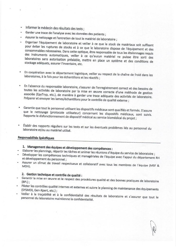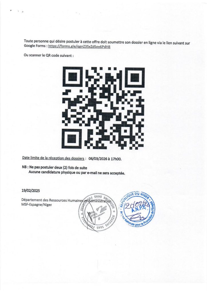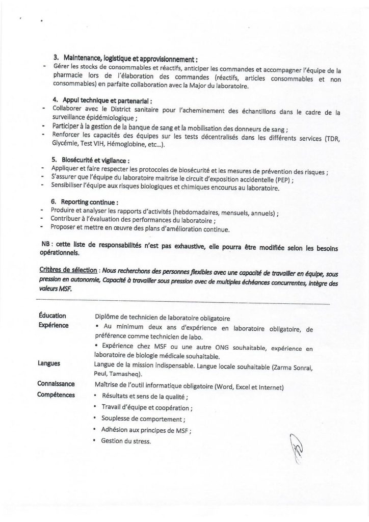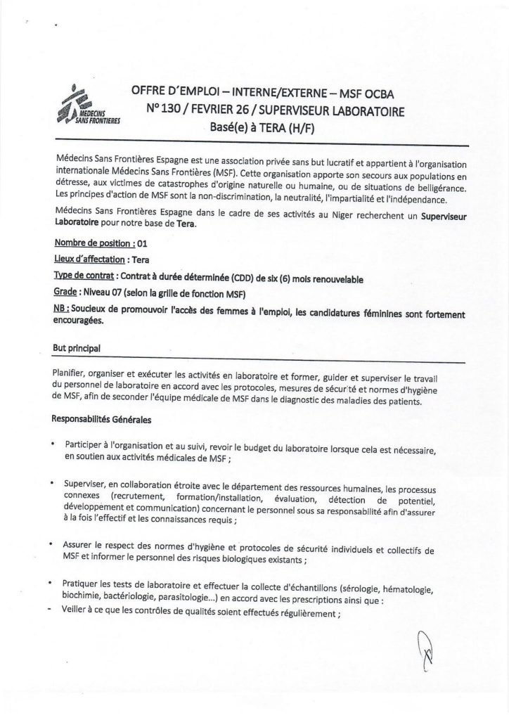 Médecins Sans Frontières Espagne dans le cadre de ses activités au Niger recherchent un #Superviseur_Laboratoire pour notre base de Tera.