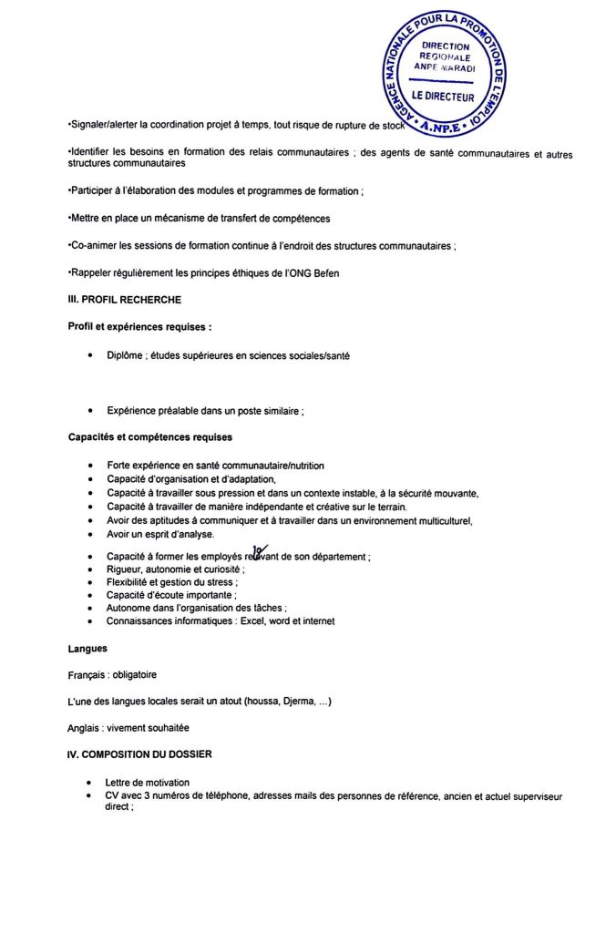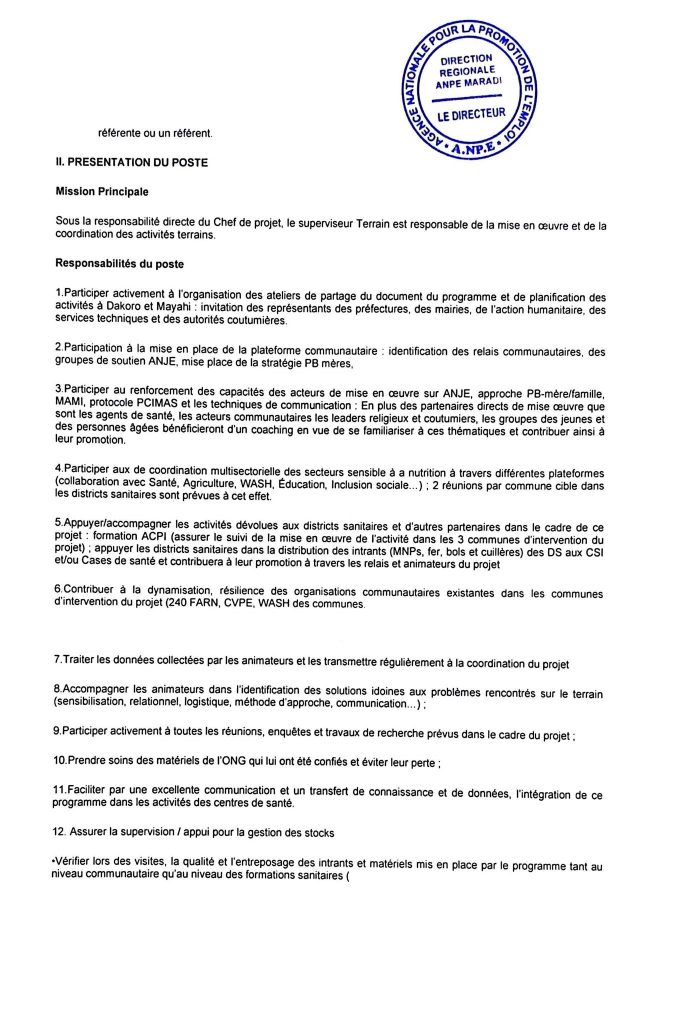 Lieu d’affectation: Département de Mayahi (Guidan Amoumoune et Mayahi)