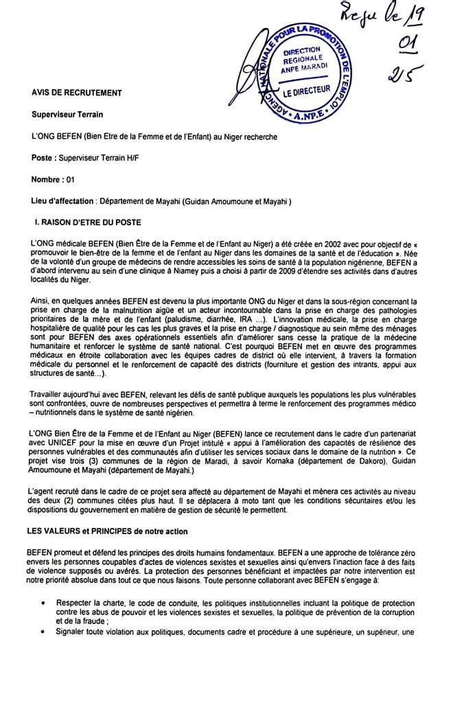 L’ONG BEFEN (Bien Etre de la Femme et de l’Enfant) au Niger recherche