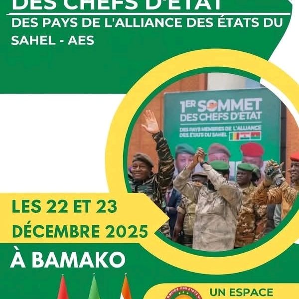 Date et Heure : Du 22 au 23 Décembre 2025 Lieu : Bamako, Mali Prix : À propos de l’événement : AES: 2ème sommet historique des pays de l’Alliance des États du Sahel les 22 au 23 Déc à Bamako