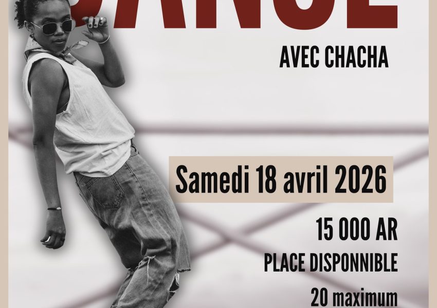 Date et Heure : Samedi 18 Avril 2026 Lieu : DIEGO SUAREZ Prix : Participation : 15 000 AR – Places limitées. À propos de l’événement : DIEGO SUAREZ , voici un Workshop danse à ne pas rater Je propose