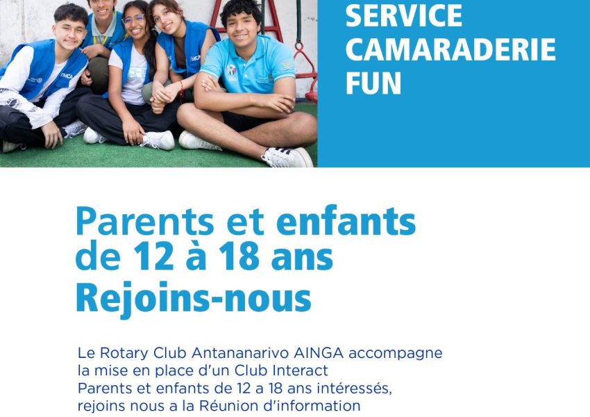 Date et Heure : Samedi 11 Avril 2026 à 15H00 Lieu : ACSA Ambohidahy, Antananarivo Prix : À propos de l’événement : Rejoins l’aventure Interact ! Tu as entre 12 et 18 ans ? Tu veux t’engager, rencontrer de nouveaux