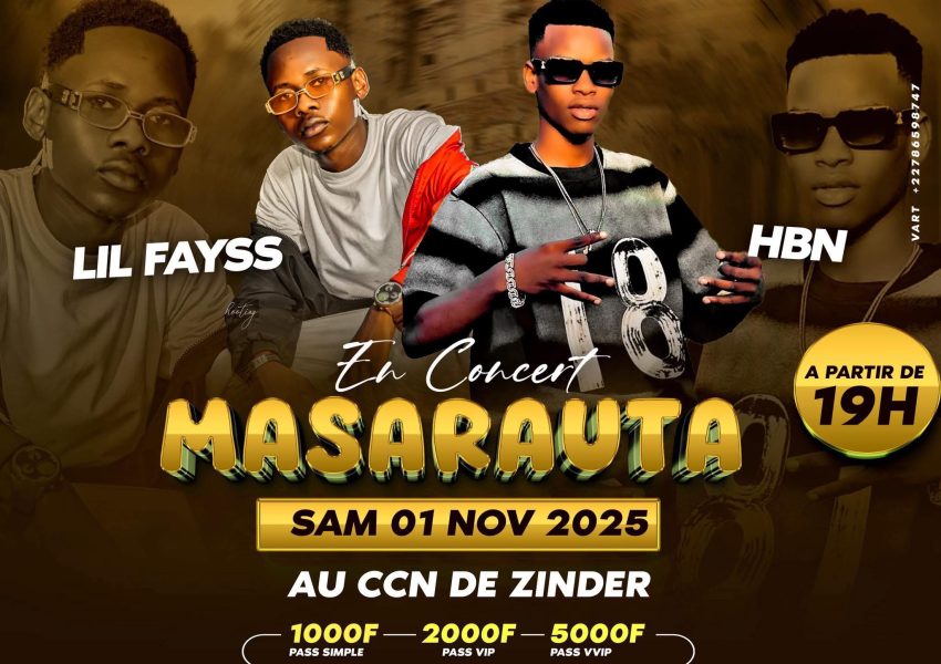 Date et Heure : Samedi 18 Octobre 2025 à 18H00. Lieu : Centre Culturel Nigérien (CCN) de Zinder – Ex CCFN, Zinder Prix : SIMPLE: 1.000 FCFA VIP: 2.000 FCFA VVIP: 5.000 FCFA + USB (ALBUM) À propos de l’événement