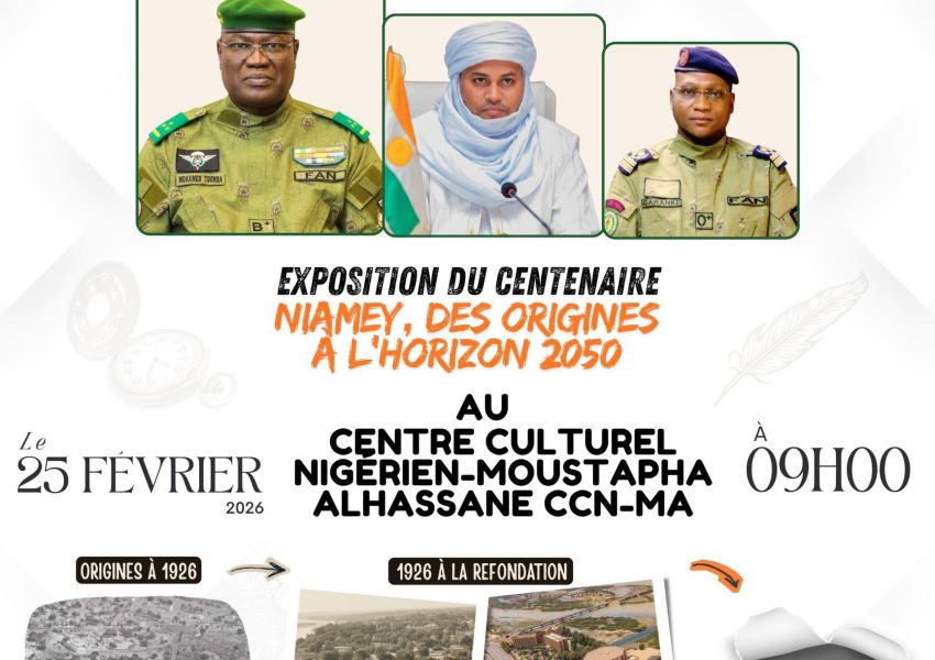Date et Heure : Mercredi 25 Février 2026 à 9H00 Lieu : Centre Culturel Nigérien Moustapha Alhassane, Niamey Prix : À propos de l’événement : Centenaire de Niamey | Ouverture de l’Exposition du Centenaire📍Ce centenaire est le nôtre, c’est egalement