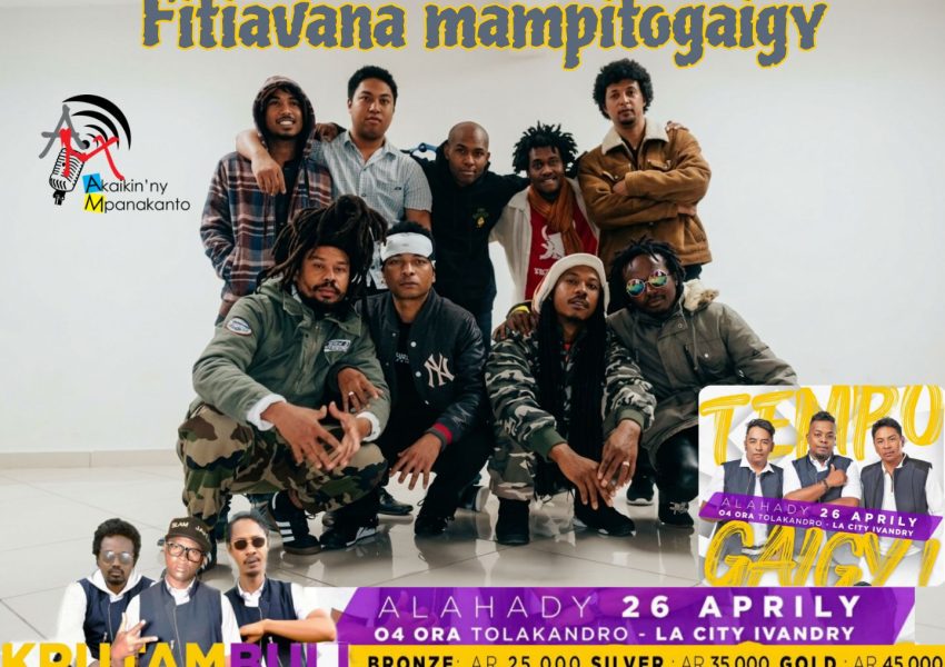 Date et Heure : Dimanche 26 Avril à partir de 16H00 Lieu : City Ivandry, Antananarivo Prix : Bronze : 25.000 ar Argent : 35.000 ar Or : 45.000 ar À propos de l’événement : N’oubliez pas TEMPO GAIGY &