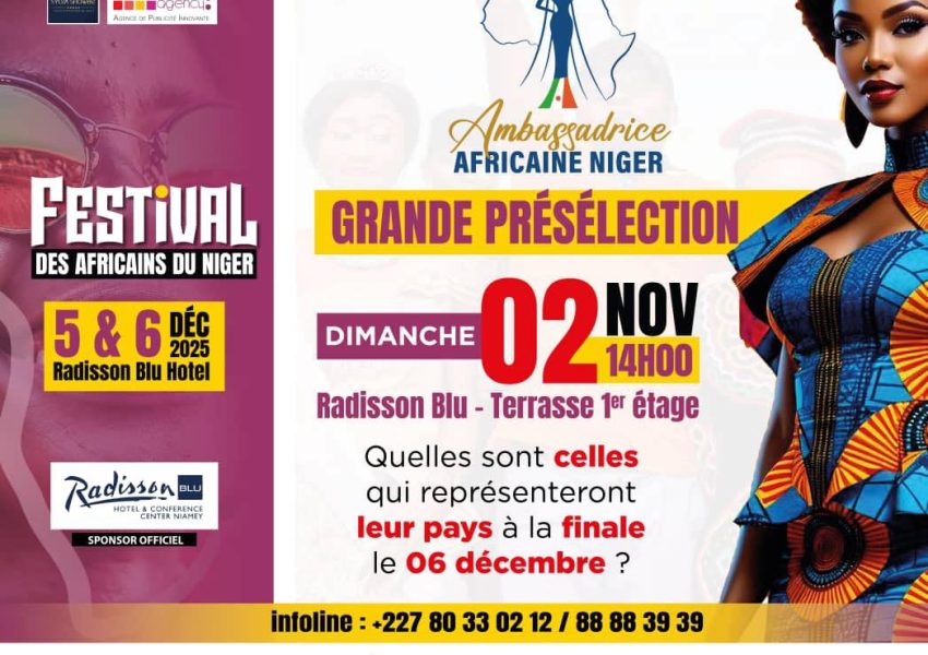 Date et Heure : Dimanche 2 Novembre 2025 à 14H00 Lieu : Hôtel Radisson Blu – Terrasse 1ᵉʳ étage, Niamey Prix : À propos de l’événement : 🔴🟢🟡⚫️Le Festival des Africains du Niger #Ambassadrice africaine concours Grande présélection des pays! Inscrivez-vous