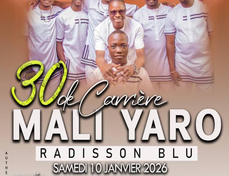 Date et Heure : Samedi 10 Janvier 2026 à 20H00 Lieu : Radisson Blu, Niamey Prix : Entrée : 10.000 FCFA À propos de l’événement : 30 ans de carrière de Mali Yaro