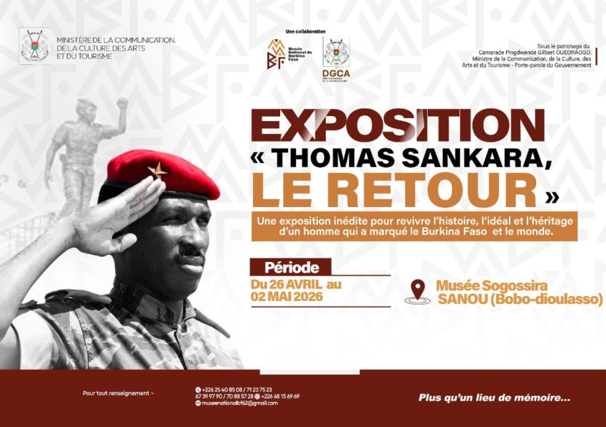 Date et Heure : Du 26 Avril au 02 Mai 2026 Lieu : Musée Sogossira Sanou – Bobo-Dioulasso, Burkina Faso Prix : À propos de l’événement : Exposition «THOMAS SANKARA, LE RETOUR ». Une exposition inédite pour revivre l’histoire, l’idéal