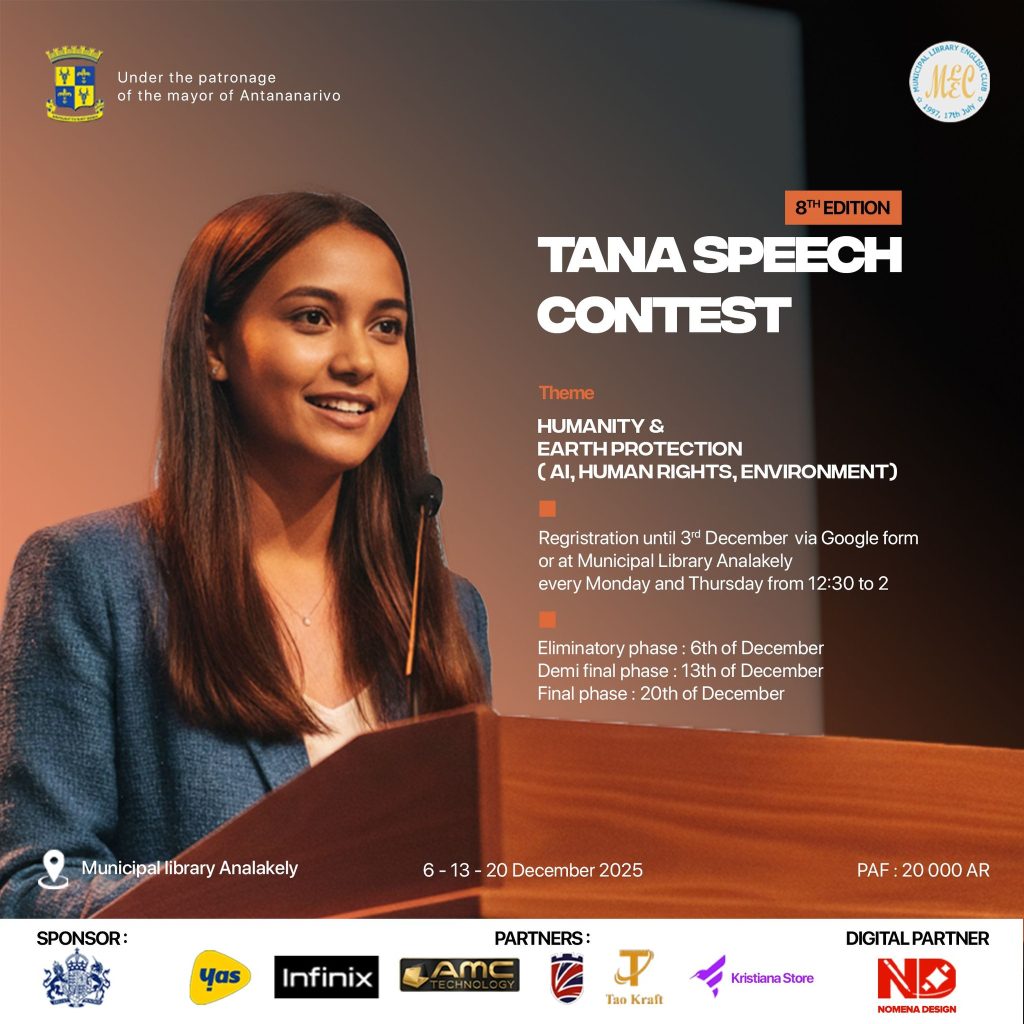 Under the patronage of the Mayor of Antananarivo, the association MLEC presents you TANA SPEECH CONTEST – 8th Edition.