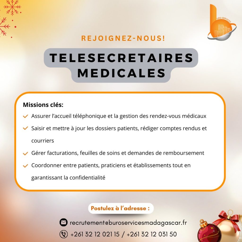 Nous recrutons des profils motivés : TÉLÉSECRÉTAIRES MÉDICALES