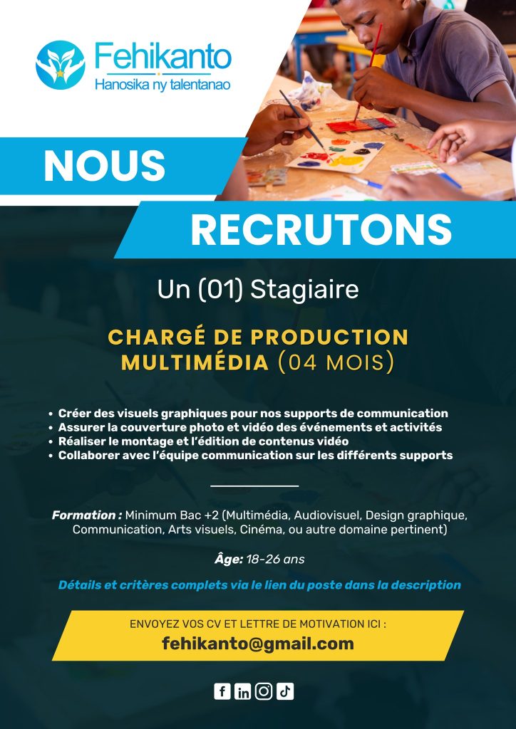 Une nouvelle année, de nouveaux talents ! L’ONG Fehikanto ouvre ses portes à des stagiaires passionnés qui souhaitent mettre leurs compétences au service de l’éducation, l’art, et la culture.