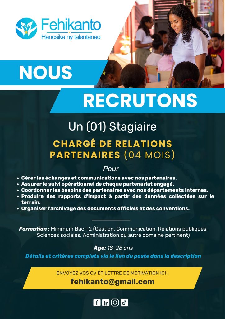 UN (01) STAGIAIRE – CHARGÉ DE RELATIONS PARTENAIRES