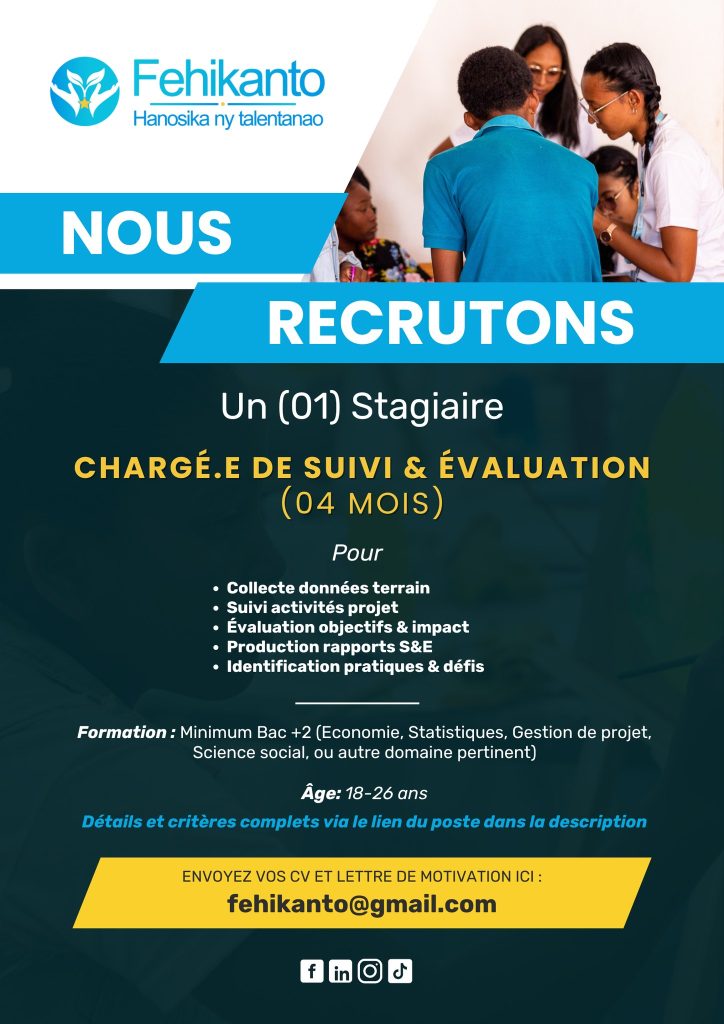UN (01) STAGIAIRE – CHARGÉ DE SUIVI-ÉVALUATION