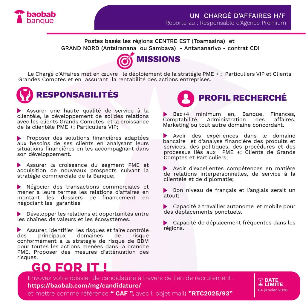 Baobab Banque Madagascar recherche des talents prêts à faire la différence.