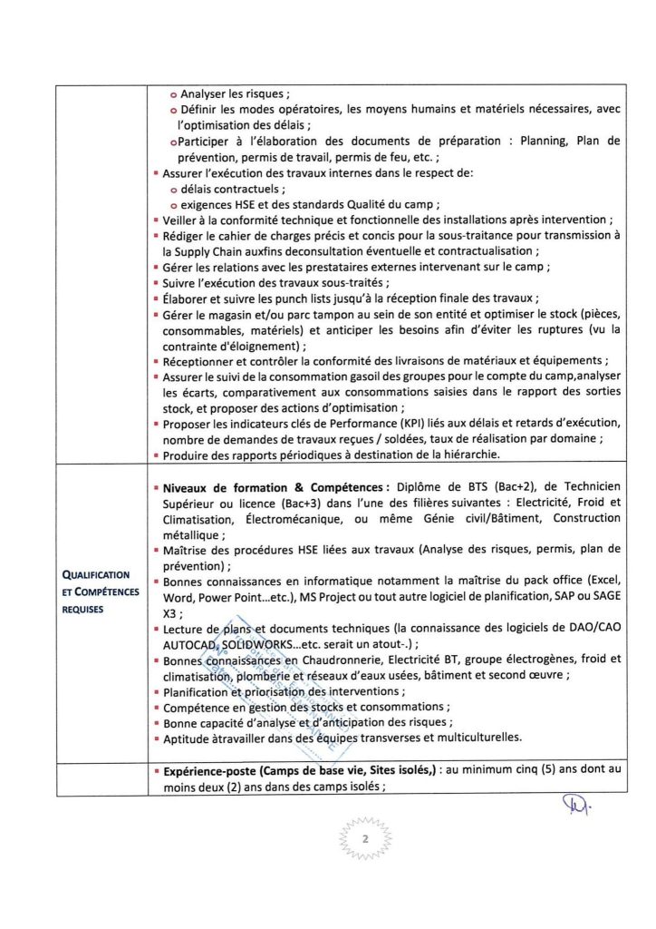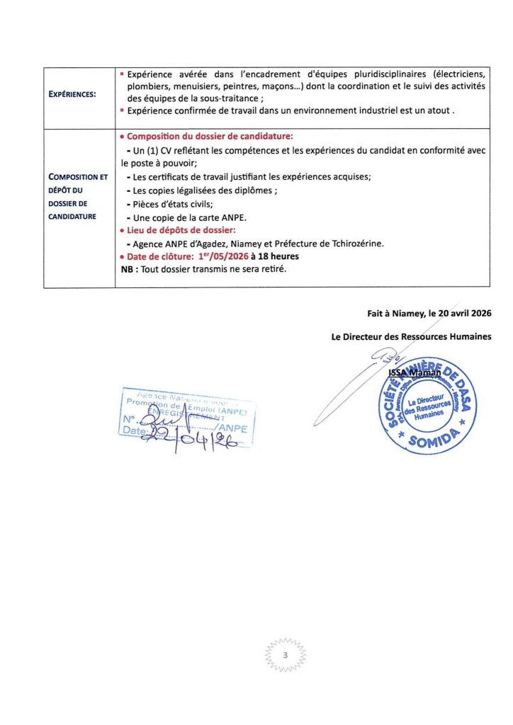 Date limite des dépôts de candidatures: Vendredi 1er Mai 2026 à 18H00