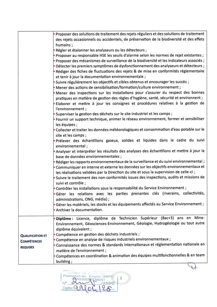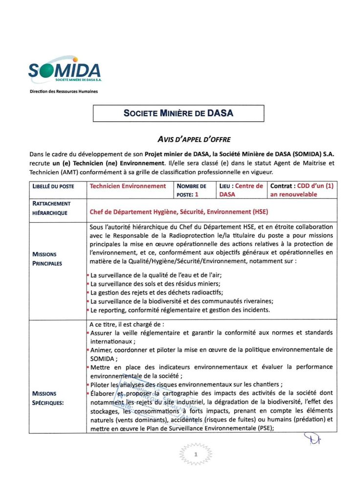 SOMIDA S.A. Recrute un (e) Technicien (ne) Environnement.