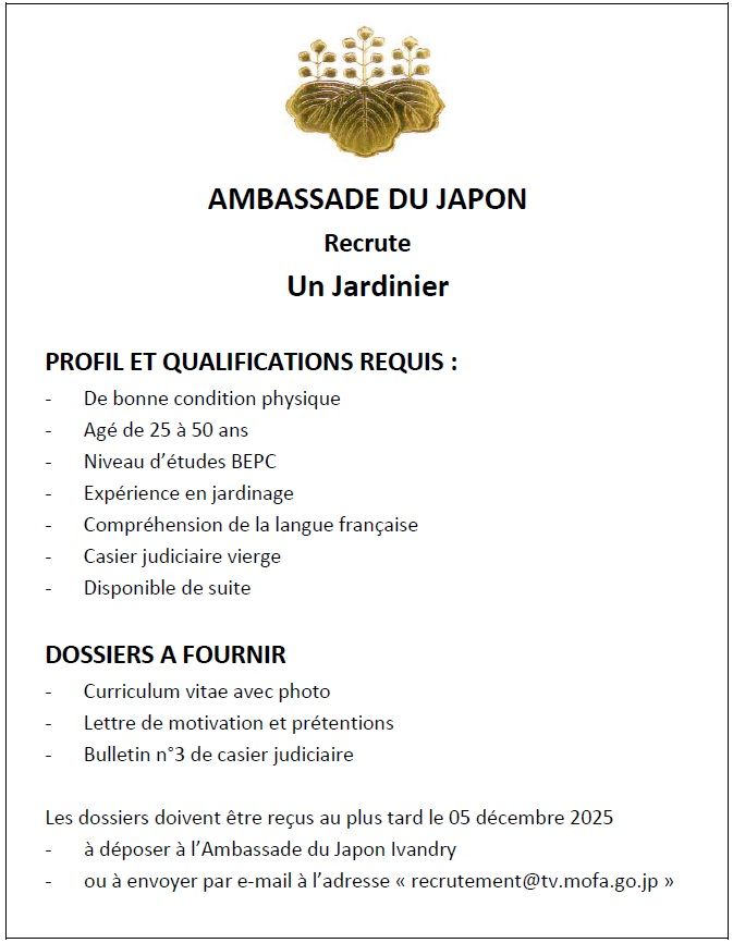 Date limite des dépôts de candidatures : Vendredi 5 Décembre 2025