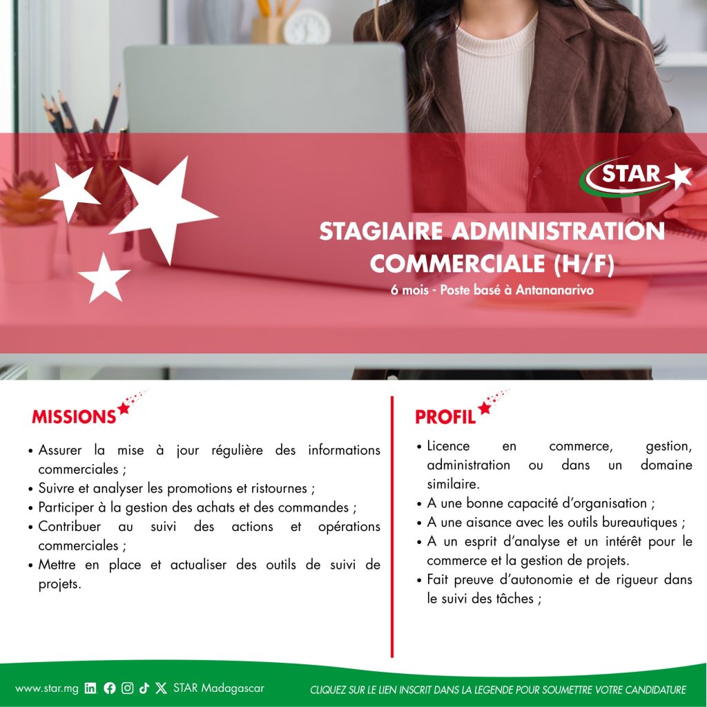 Visitez notre site pour plus d’offres : https://www.star.mg/emplois/
