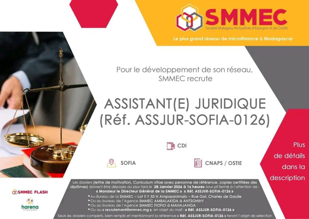 ✅ou au « recrutement@smmec.mg », en objet du mail la référence du poste