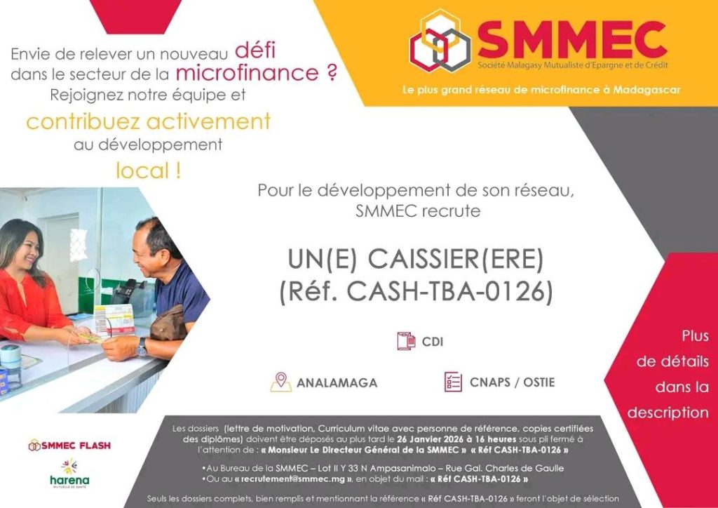 ✅ou au « recrutement@smmec.mg », en objet du mail la référence du poste