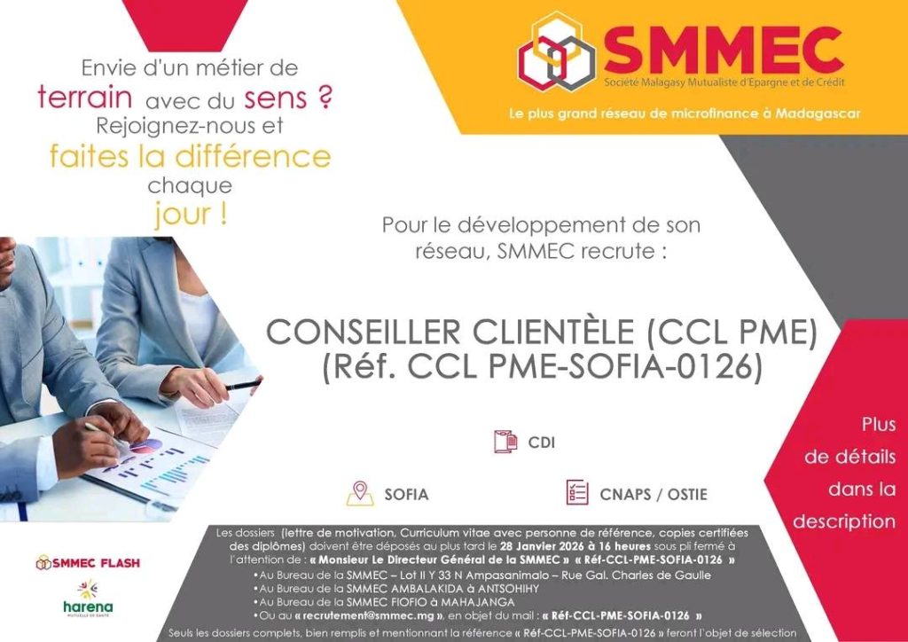 ou au « recrutement@smmec.mg », en objet du mail la référence du poste