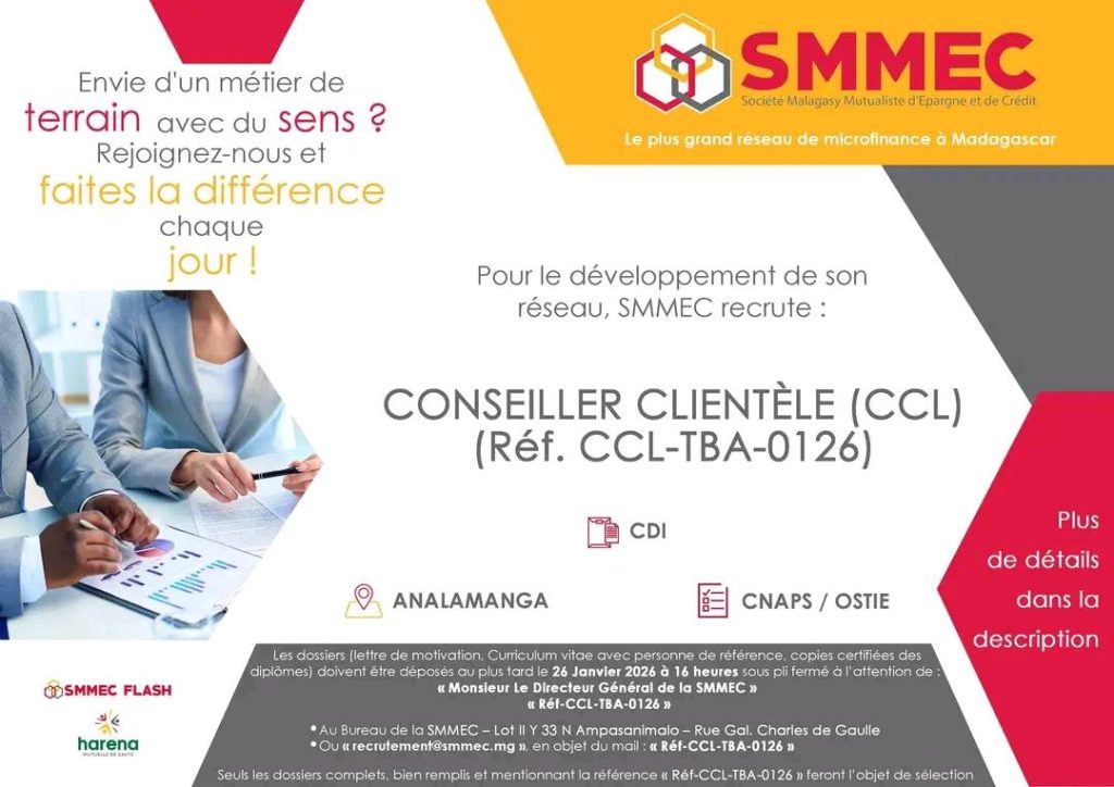 ou au « recrutement@smmec.mg », en objet du mail la référence du poste