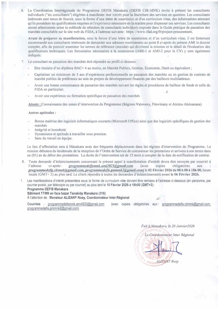 #DEFIS#FIDA#Recrutement#Consultant#PassationDesMarchés#DéveloppementAgricole#Madagascar#Manakara