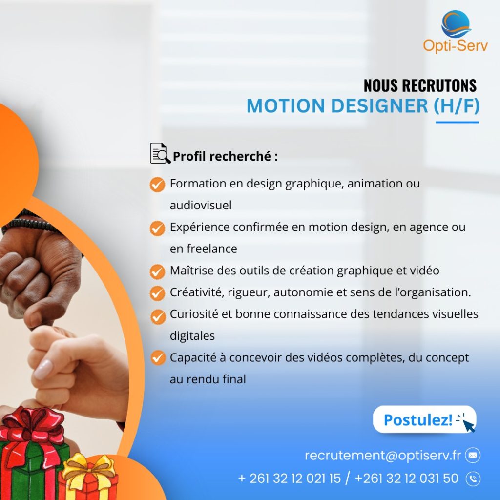 🤩Nous recherchons un(e) Motion Designer créatif(ve) et passionné(e), capable de concevoir, produire et diffuser des contenus animés engageants pour nos réseaux sociaux et supports de communication.