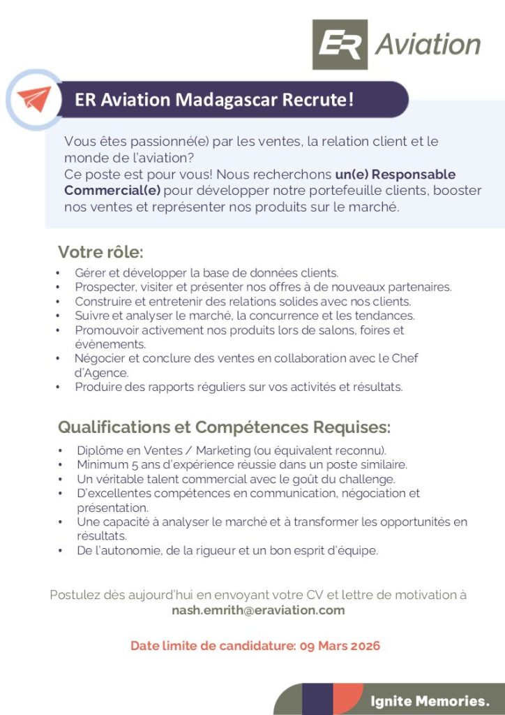 𝐄𝐑 𝐀𝐯𝐢𝐚𝐭𝐢𝐨𝐧 𝐌𝐚𝐝𝐚𝐠𝐚𝐬𝐜𝐚𝐫 𝐑𝐞𝐜𝐫𝐮𝐭𝐞 ! – 𝐑𝐞𝐬𝐩𝐨𝐧𝐬𝐚𝐛𝐥𝐞 𝐂𝐨𝐦𝐦𝐞𝐫𝐜𝐢𝐚𝐥(𝐞)